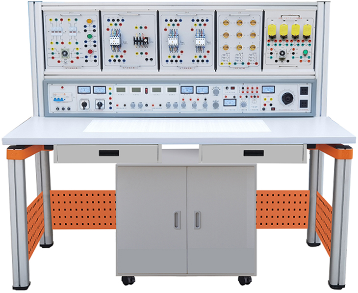 裝置由主機箱、實(shí)驗桌、移動(dòng)矮柜、電氣控制實(shí)驗掛箱、實(shí)驗掛箱支架、學(xué)生凳等組成。實(shí)驗桌可組合、可拆裝。支架與桌腳一體,鋁合金結構;電氣控制實(shí)驗掛箱及各實(shí)驗模塊可根據實(shí)驗需求自由組合實(shí)驗。