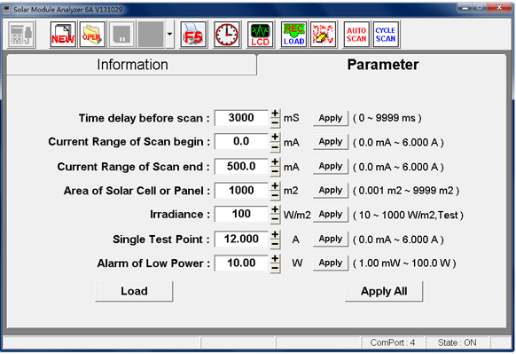 l 量測最大功率時(shí)(Pmax) 的最大電壓 (Vmaxp) 最大電流 (Imaxp)