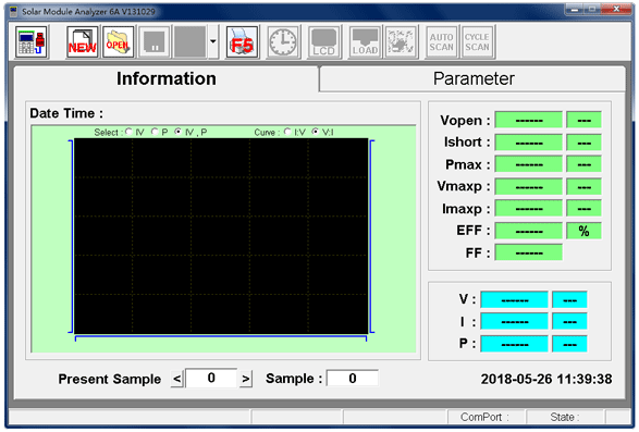 ● 可測量參數: I-V曲線(xiàn),P-V曲線(xiàn),短路電流,開(kāi)路電壓,峰值功率,峰值功率點(diǎn)電壓、電流,定電壓點(diǎn)電流,填充因子,轉換效率,串聯(lián)電阻,并聯(lián)電阻,太陽(yáng)電池溫度,環(huán)境溫度、輻照度。