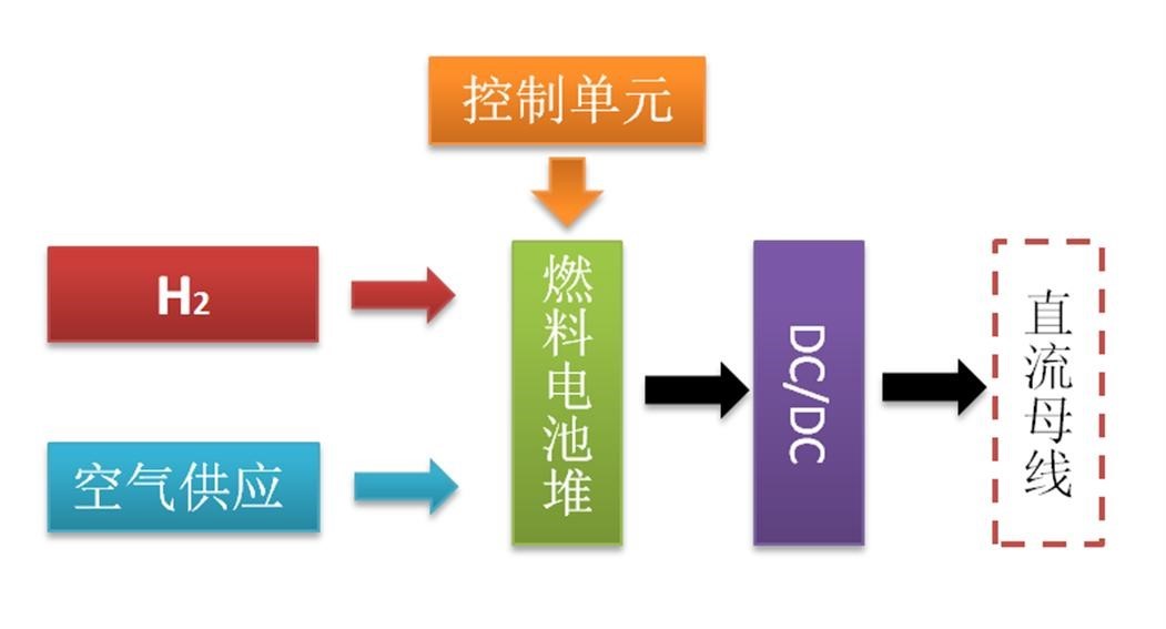 由太陽(yáng)能電池組、光伏控制系統、氫燃料電池發(fā)電系統、制氫系統、主控系統組成的微網(wǎng)發(fā)電系統。
