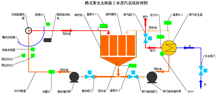 1、配置照度計用于控制槽式太陽(yáng)能集熱器的跟蹤的啟動(dòng)與否,配置流量計不得顯示流量中斷,否則系統提示需要補充導熱油,或者檢查故障,系統停止工作;