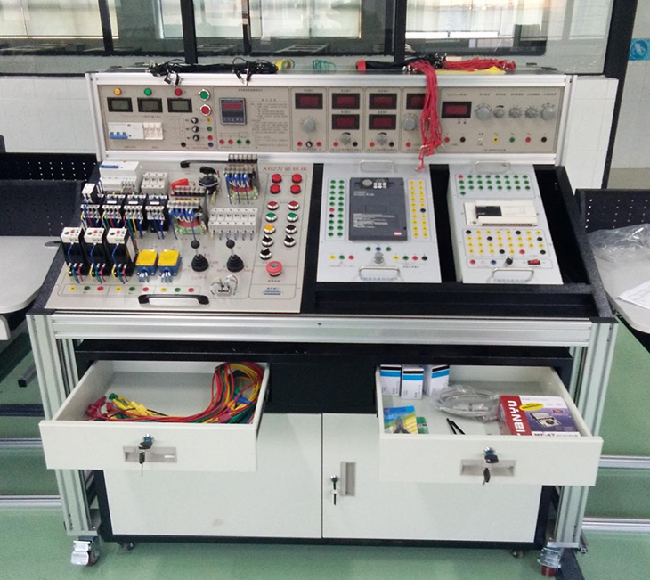 按生產(chǎn)現場(chǎng)的電氣控制柜設計,元件按生產(chǎn)實(shí)際中常用的控制電路配備,選用元件與生產(chǎn)、生活中實(shí)際使用的元件一樣,創(chuàng )設工作情景,實(shí)訓與生產(chǎn)實(shí)際的工作過(guò)程相同,得到的技能訓練全面,掌握的專(zhuān)業(yè)知識和技能牢固,對學(xué)生形成職業(yè)能力的訓練效果好。