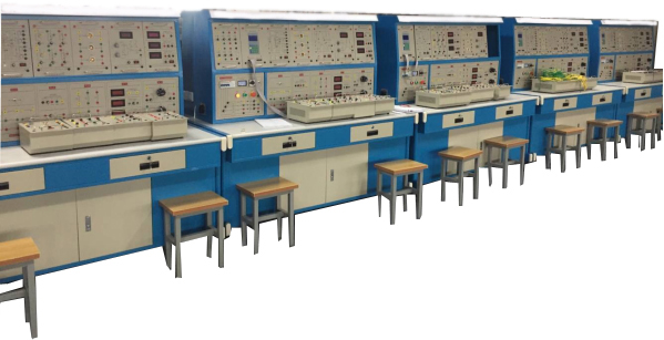 實(shí)訓裝置由控制屏、實(shí)訓桌以及各個(gè)實(shí)訓組件構成